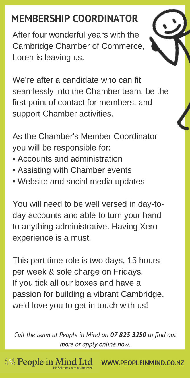 We’re after a candidate who can fit seamlessly into the Chamber team, be the first point of contact for members, and support Chamber activities.