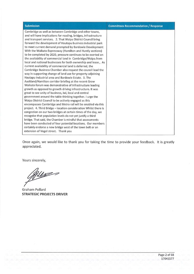 The Cambridge Business Chamber's submission and responses from the Strategic Planning & Policy Committee are provided below.