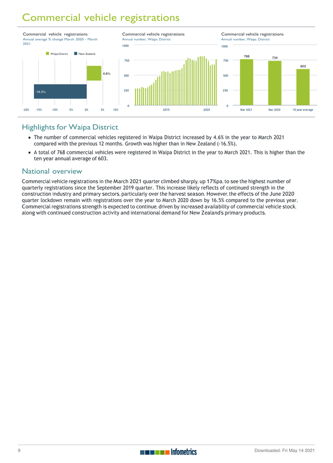 Overall spending activity shows solid economic foundations and a willingness to continue spending and investing locally. Both passenger car (+21%pa) and commercial vehicle (+59%pa) registrations were up strongly and above national growth rates, which signals still-firm investment willingness from businesses and households (vehicle registrations can provide an insight into investment