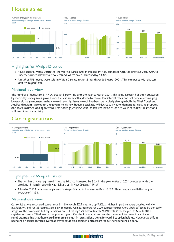 Spending outcomes in Waipā remain better than the regional or national average, with Marketview data and Infometrics analysis showing card spending rose 6.6%pa in the December 2020 quarter and then 4.8%pa in the March quarter (even as nationwide spending fell 1.4%pa in the March quarter).