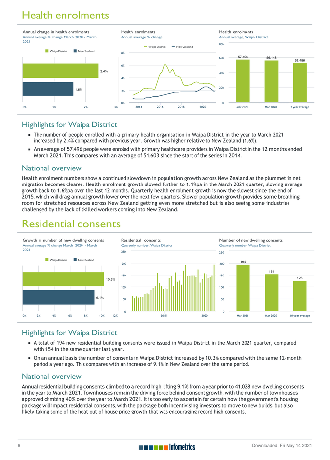 the regional or national average. Healthy residential consent profiles will continue to support building work, although capacity constraints (around workers and materials) could result in longer timeframes for actual construction to occur.